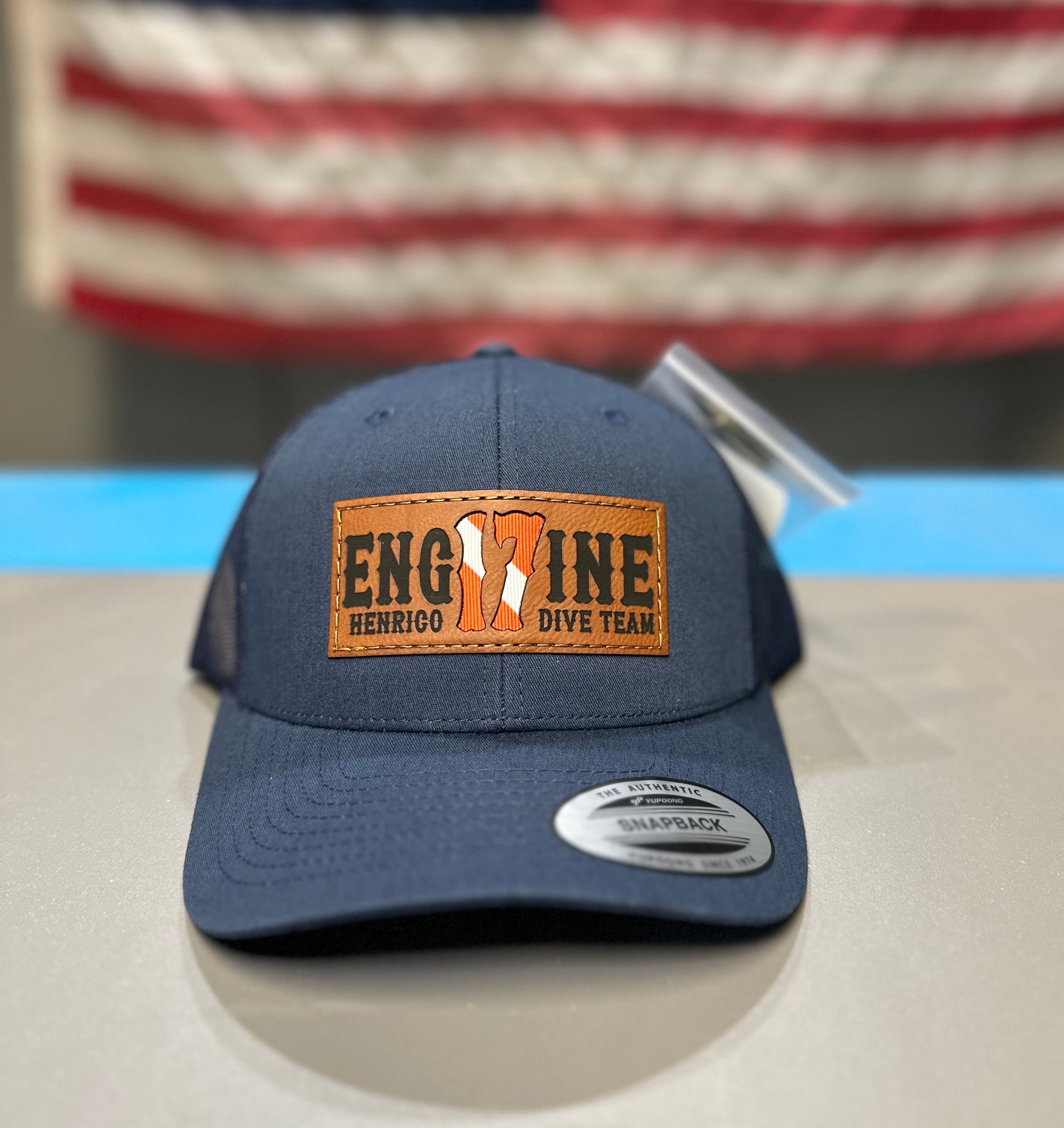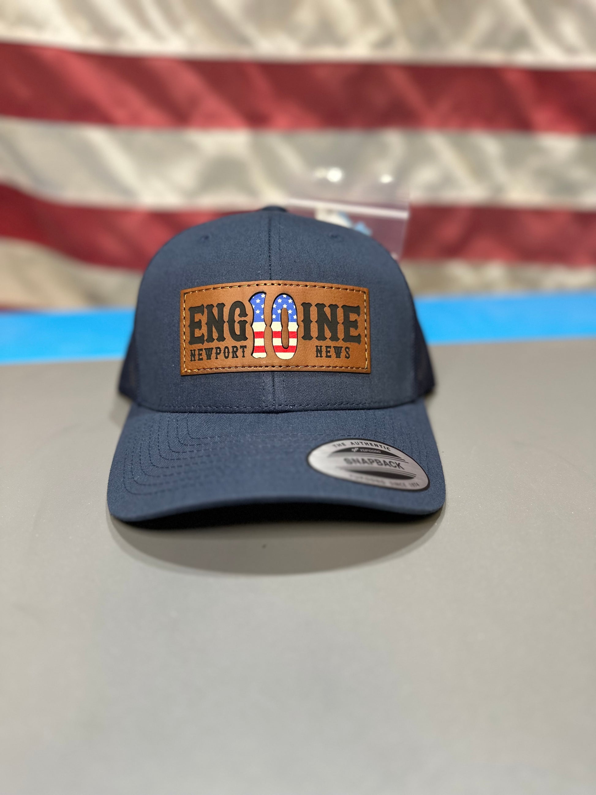 Our most popular hat with a Boston style font. This hat features a classic trucker hat with our custom patch that includes the American Flag patch backer.
